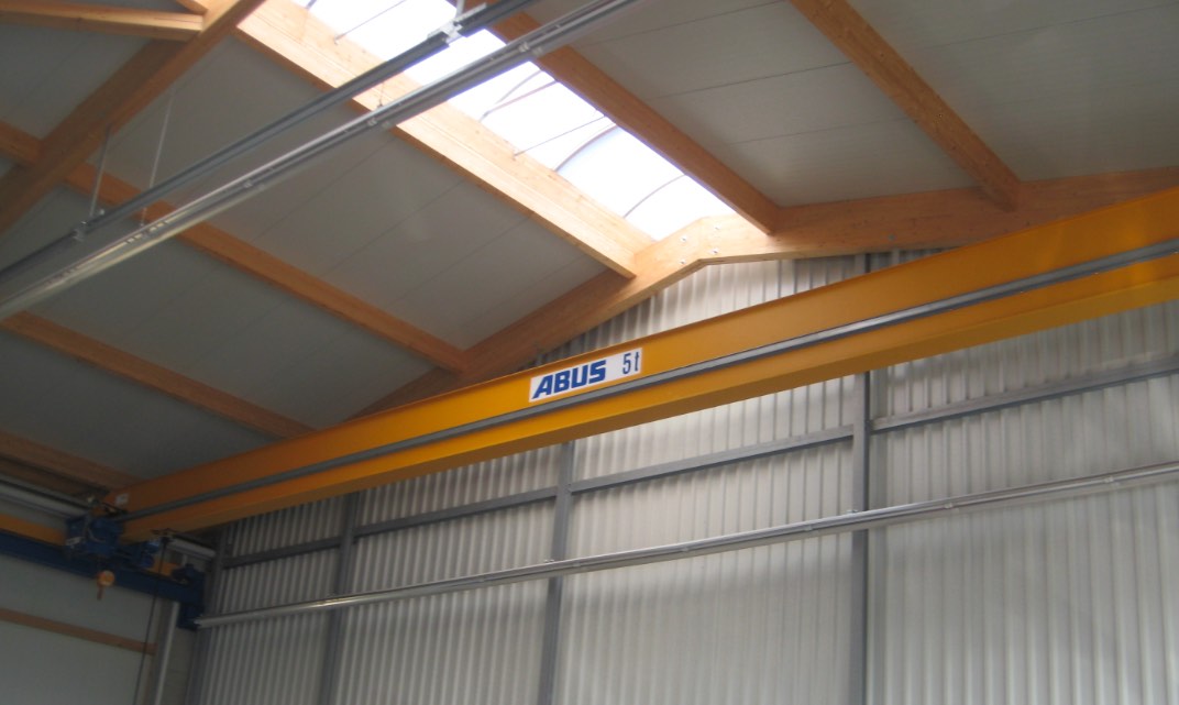 Gewerbeobjekt auf schwierigem Baugrund mit Bodenaustausch. Bürotrakt in Massivbauweise. Gewerbehalle in Fertigteilbauweise. Umhüllung mit Sandwich-Platten. Heizung über Bauteilaktivierung der Bodenplatte. In der Halle mehrere Montagegruben und Montagekran.