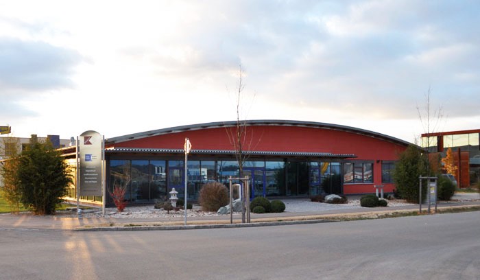 Stahlbetonskelettbau mit Porenbeton, Umfassungswände. Segmentbogendach mit bombierter Wellblechabdeckung. Bürobereich nach Osten und Süden in Vollverglasung. Gesamtes Objekt in den corporate-identity-Farben des Betriebes. Dachtragwerk aus Leimholzbindern (sichtbar). Zwischenwände im Gebäude sichtbar gefaste Kalksteinwände. Im Objekt Bodenheizung. Außenbereich mit Stellplätzen. Vorgarten als japanischer Garten angelegt.